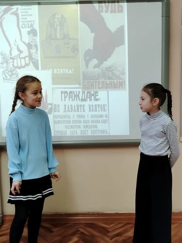в школе организована выставка рисунков и плакатов, отражающих негативное отношение к коррупции и призывающих к честному поведению;